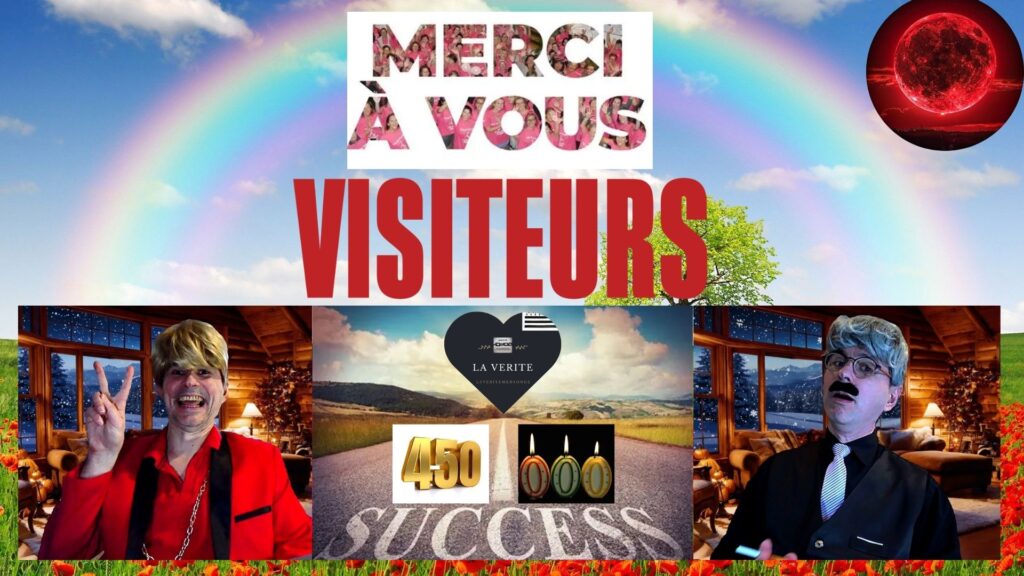 GEANT CE CONCEPT LAVERITEMENSONGE, EST EN TRAIN D’EXPLOSER, EN VISITEURS ET EN VIDEOS EN TELECHARGEMENT, MERCI VOUS HONOREZ LE TRAVAIL DE VOTRE CONSOLATEUR, ENVOYE DU CIEL, L’ANGE DE VERITE, LE SAINT – ESPRIT, CET OBJECTEUR DE CONSCIENCE, QUI VOUS LIBERE LE COEUR, GRACE A LA CLE DU BONHEUR, QU’IL VOUS OFFRE.