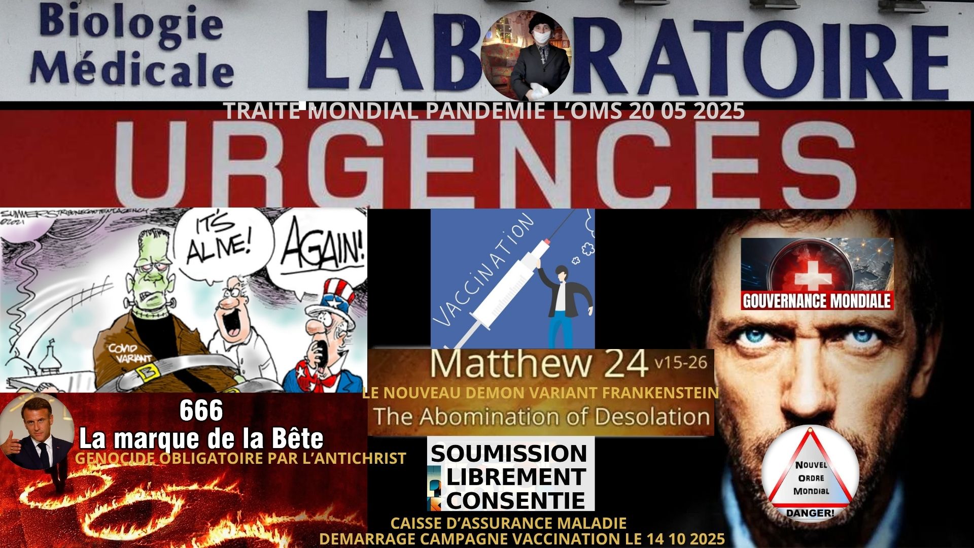 LE MONDE ENTIER VA CROIRE A LEUR MENSONGE, SAUF QUE A LA MOITIE DE LA SEMAINE, LES SACRIFICES VONT REPRENDRE, ILS VONT FAIRE L’INVERSE, NOTAMMENT AVEC LE DEMARRAGE, DE LA VACCINATION GRATUITE, POUR ATTIRER LES MOUTONS AVEC CE NOUVEAU FAUX VIRUS, LA COURONNE DE SATAN ( CORONAVIRUS ) LE VARIANT FRANKESTEIN, UNE SHOAH EN MARCHE LE 14 10 2025, APRES QUE L’OMS ORGANE GENOCIDAIRE, A MIS EN PLACE UN TRAITE MONDIAL, LE 20 05 2025 SUR UNE NOUVELLE PANDEMIE, TOUJOURS LES SERIES ET EMISSIONS A LA TELEVISION VONT PROGRAMMER LES ESCLAVES A AGIR, COMME DES BLAIREAUX A SUIVRE DES DICTATEURS MACHINES, EN ENFER.