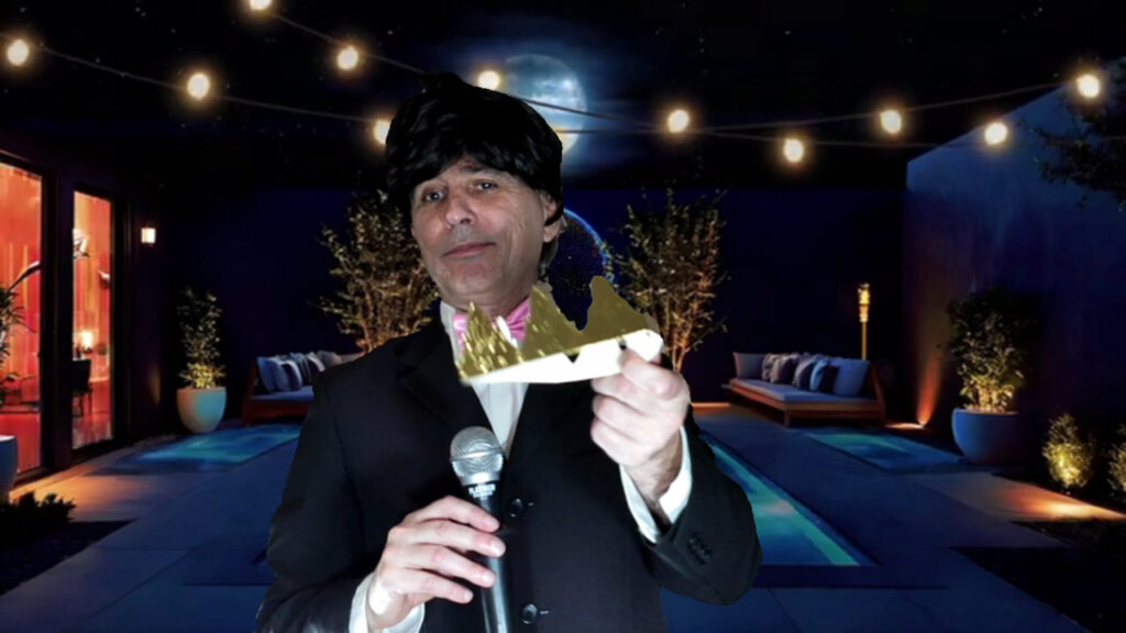 COLUCHE ET THIERRY LE LURON EN 1985, VOUS EVEILLEZ EUX AUSSI, A TRAVERS CETTE PARODIE, POUR VOUS INFORMER, QU’UNE UNION ENTRE DEUX HOMMES, DANS LE FUTUR, ETAIT EN PREPARATION DANS LE CIEL, UN MARIAGE D’AMOUR CELESTE.
